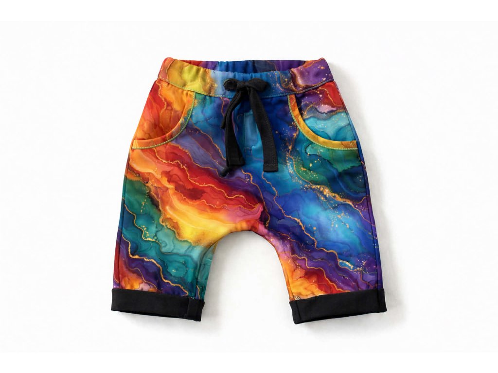 Pohodlné dětské baggy kraťasy ušité z kvalitní teplákoviny s atestem, vhodné i pro děti do 3 let. Volnější střih poskytuje maximální komfort a volnost pohybu, takže jsou ideální na každodenní nošení, hraní doma, venku i na hřišti.