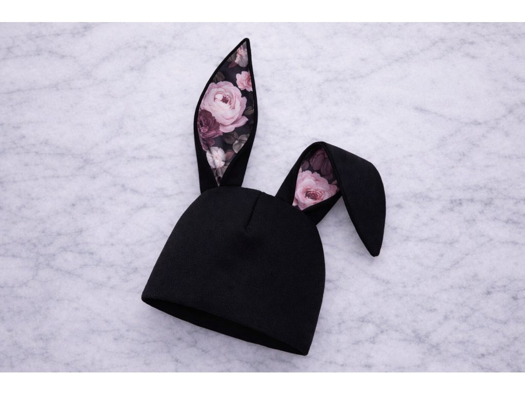 Stylová dětská čepice s roztomilými králičími oušky, která zaujme na první pohled. Zvenku je elegantně černá, uvnitř oušek se skrývá výrazný duhový květinový vzor, který dodává čepici hravost a originalitu.