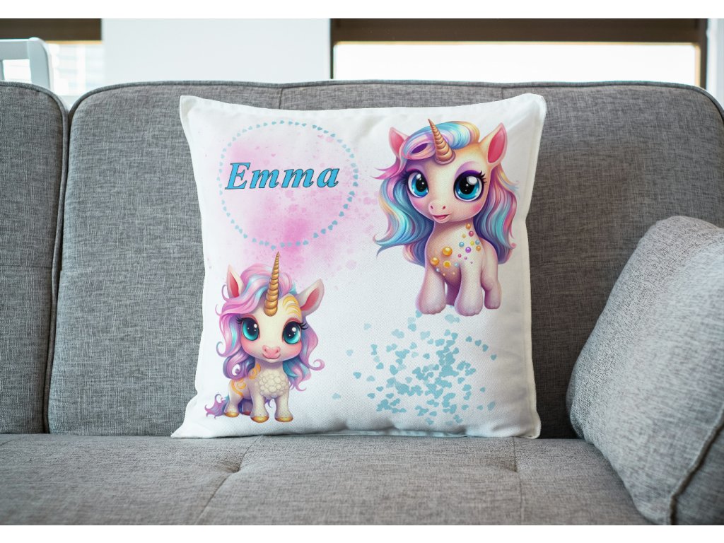 Polštář je zdoben jemným a barevným motivem, který potěší děti i rodiče. Díky možnosti personalizace jménem se stává originálním doplňkem a krásným dárkem k narozeninám, Vánocům nebo jiné příležitosti.