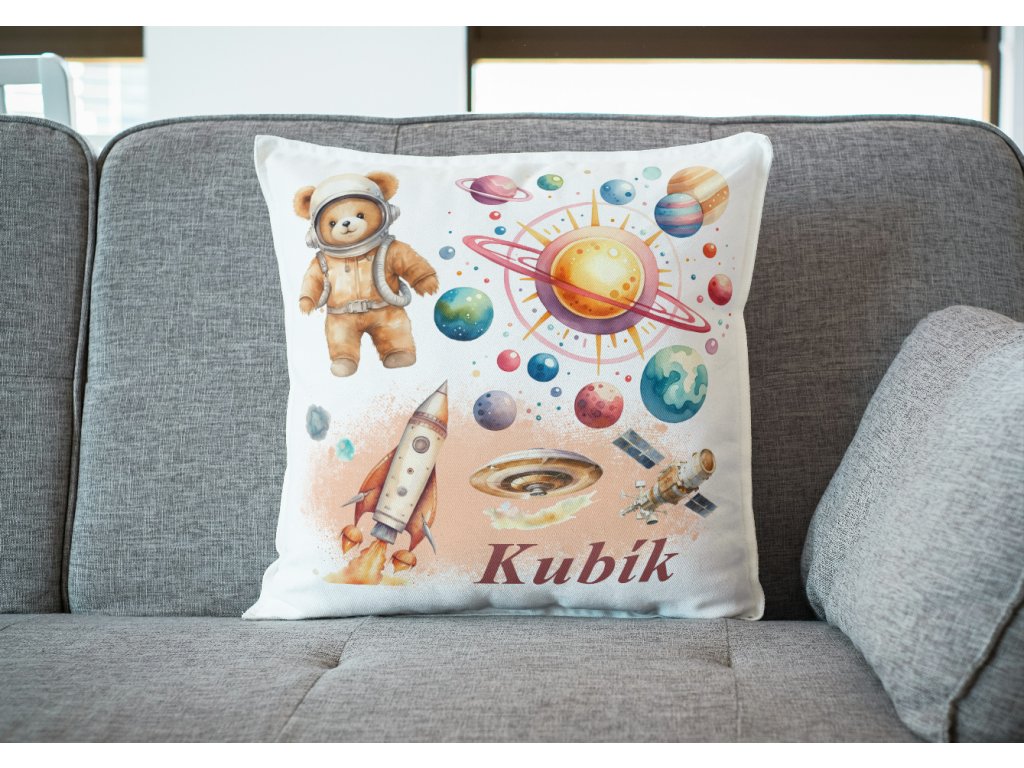 Dekorační polštář - Vesmír s medvídkem