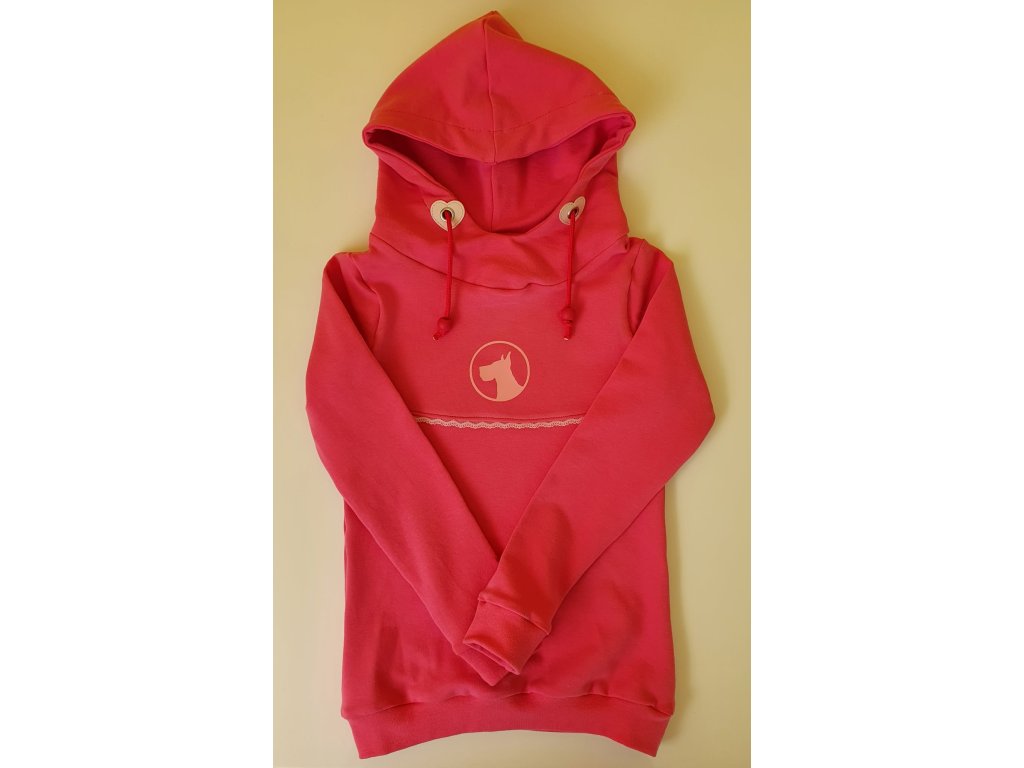 Potisk je vytvořen pomocí nažehlovací fólie vyřezané na plotteru, která dodává mikině originální vzhled.