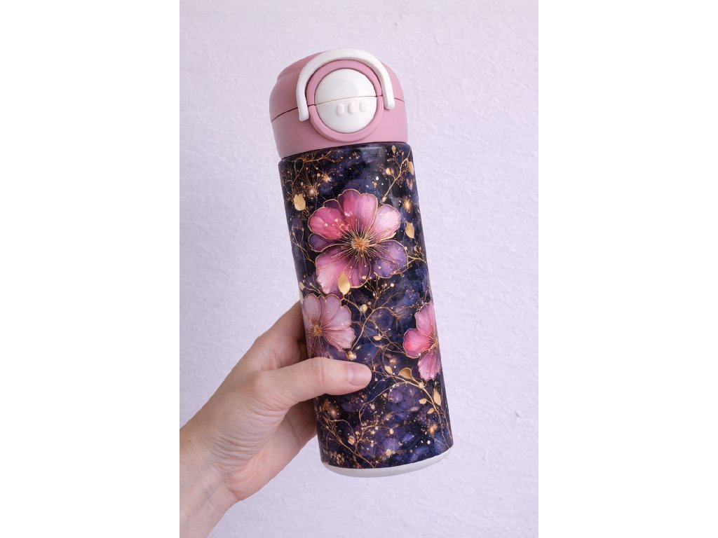 Dětská termoska s brčkem i pítkem - 530ml - květy