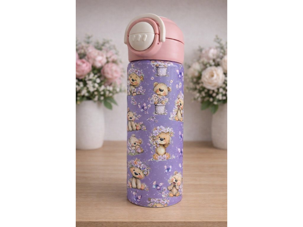 Dětská termoska s brčkem i pítkem - 530ml - medvidek