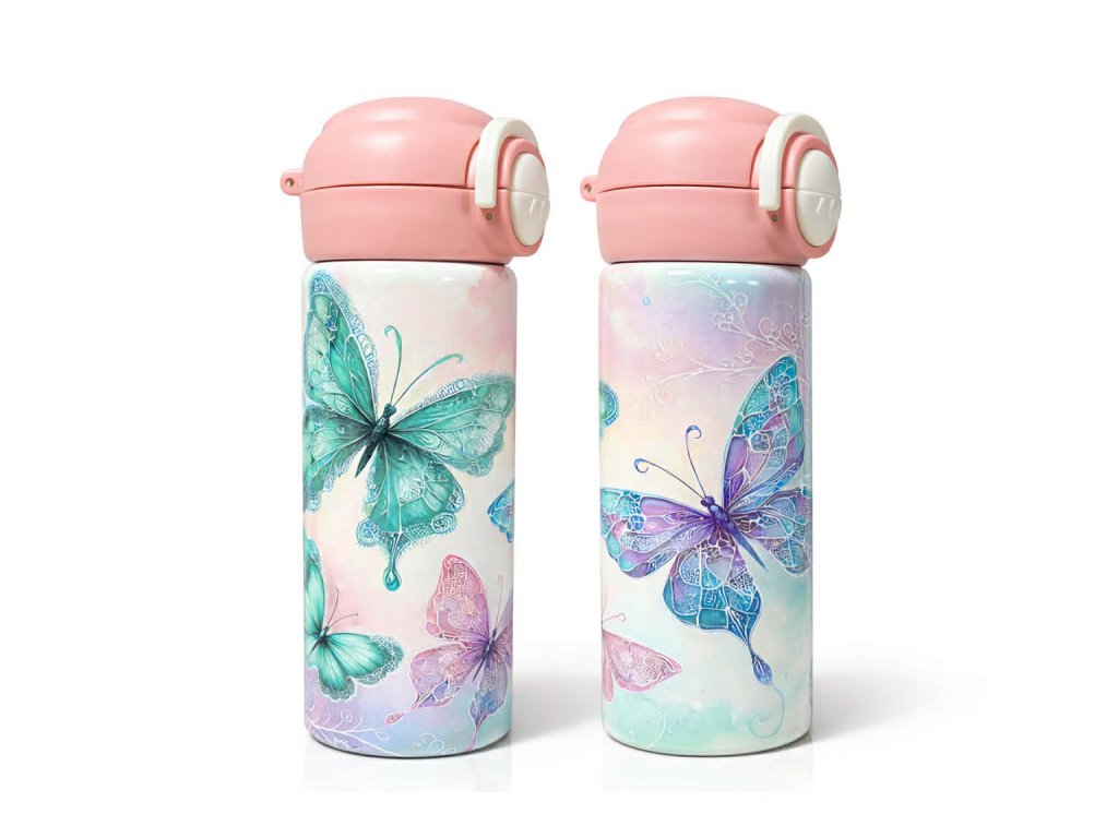 Dětská termoska s brčkem i pítkem- 530ml - motýl