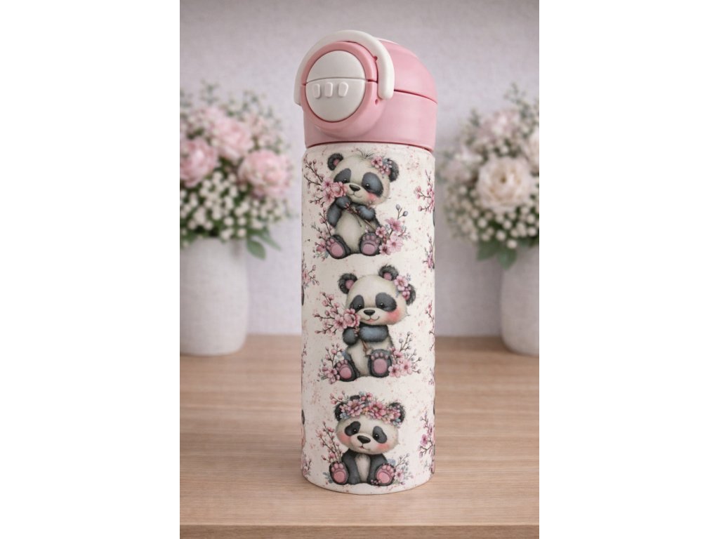 Dětská termoska s brčkem i pítkem - 530ml - pandy