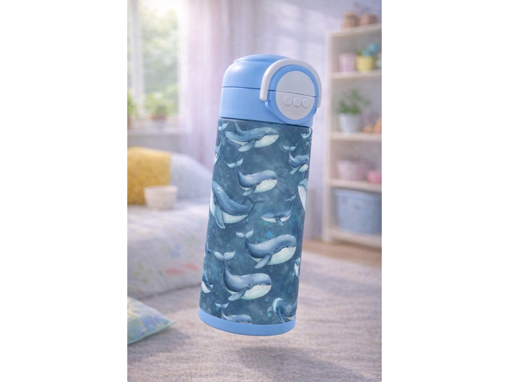 Dětská termoska s brčkem i pítkem - 530ml - velrybky