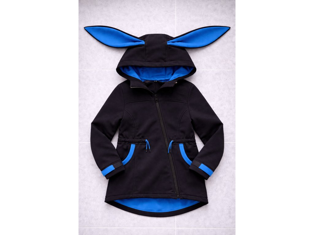 Kabátek s ušima - Černý s modrou