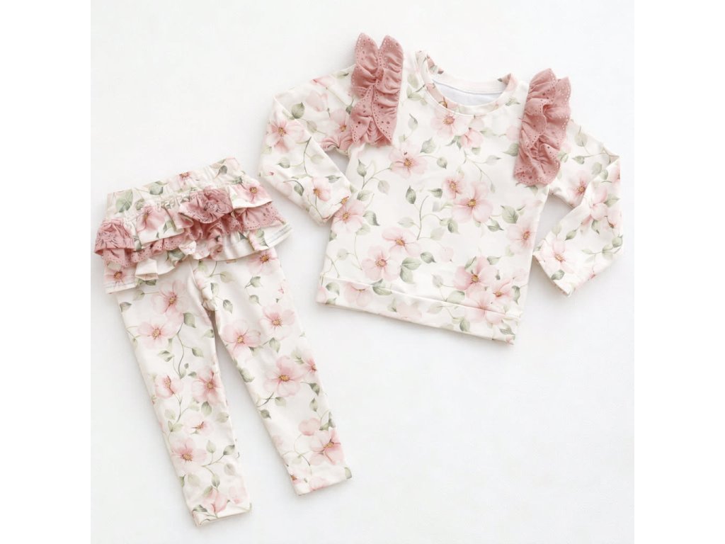 Volánky dodávají mikině jemný, dívčí vzhled a z obyčejného outfitu udělají krásný a pohodlný komplet. Mikina se snadno kombinuje s legínkami, tepláčky i sukýnkou.