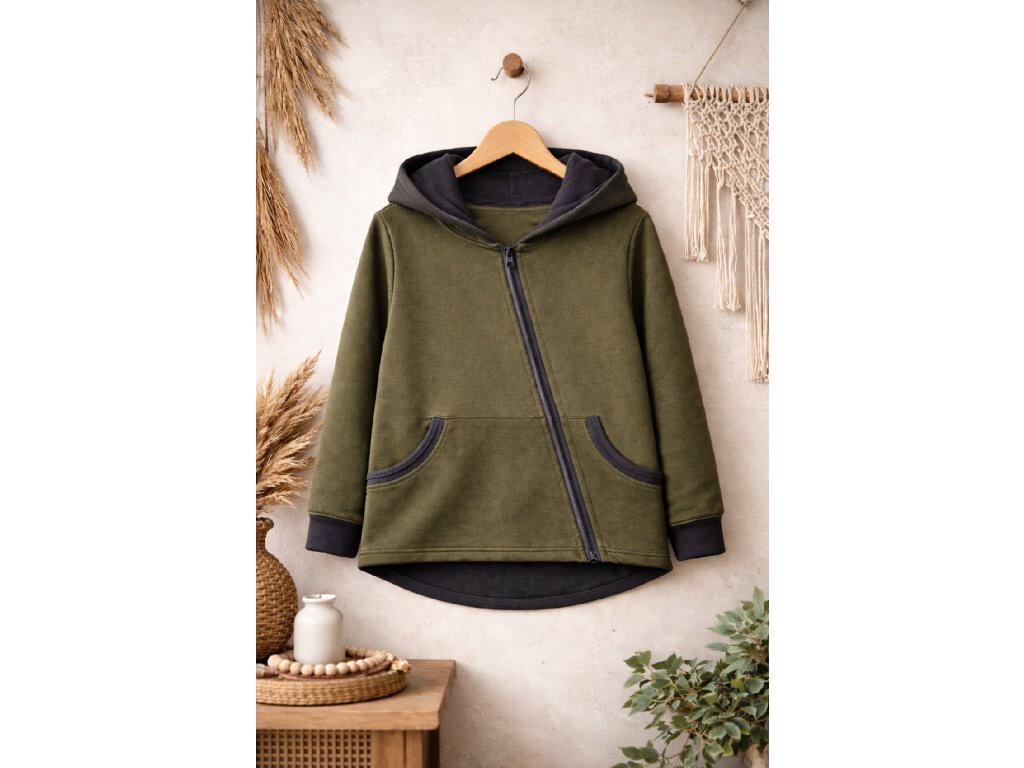 Originální dětská mikina s kapucí a doplněná o výrazný šikmý zip, který dodává mikině moderní a sportovní vzhled. Díky promyšlenému střihu je mikina nejen stylová, ale i velmi pohodlná na oblékání a nošení.