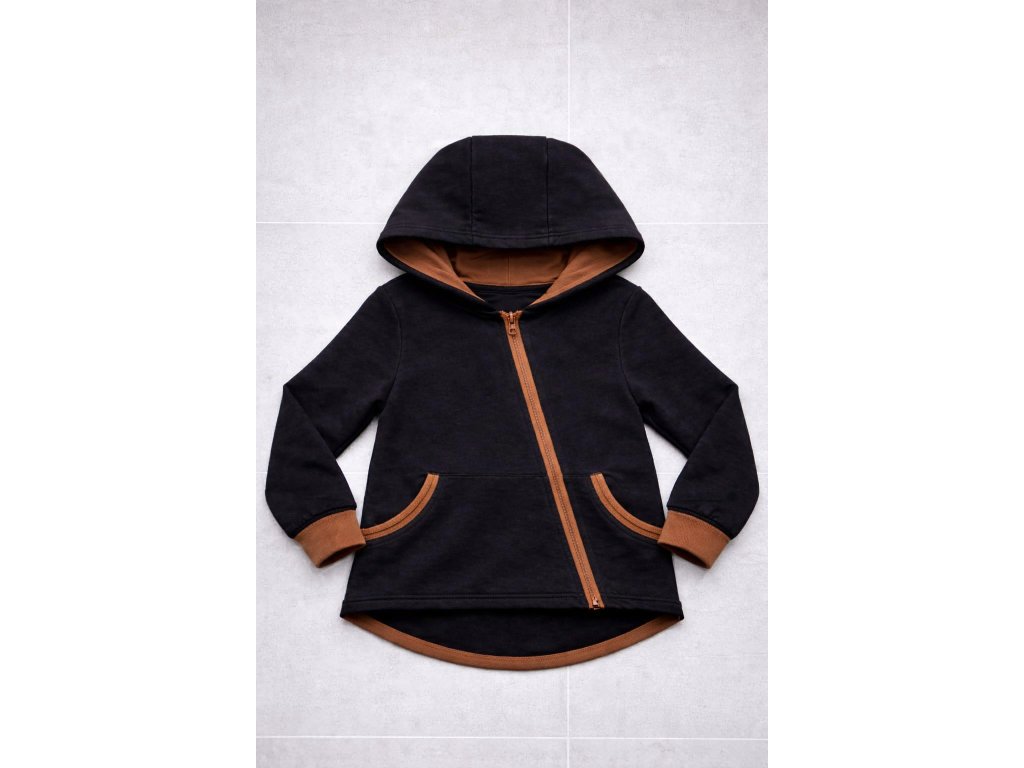 Originální dětská mikina s kapucí a  doplněná o výrazný šikmý zip, který dodává mikině moderní a sportovní vzhled. Díky promyšlenému střihu je mikina nejen stylová, ale i velmi pohodlná na oblékání a nošení.