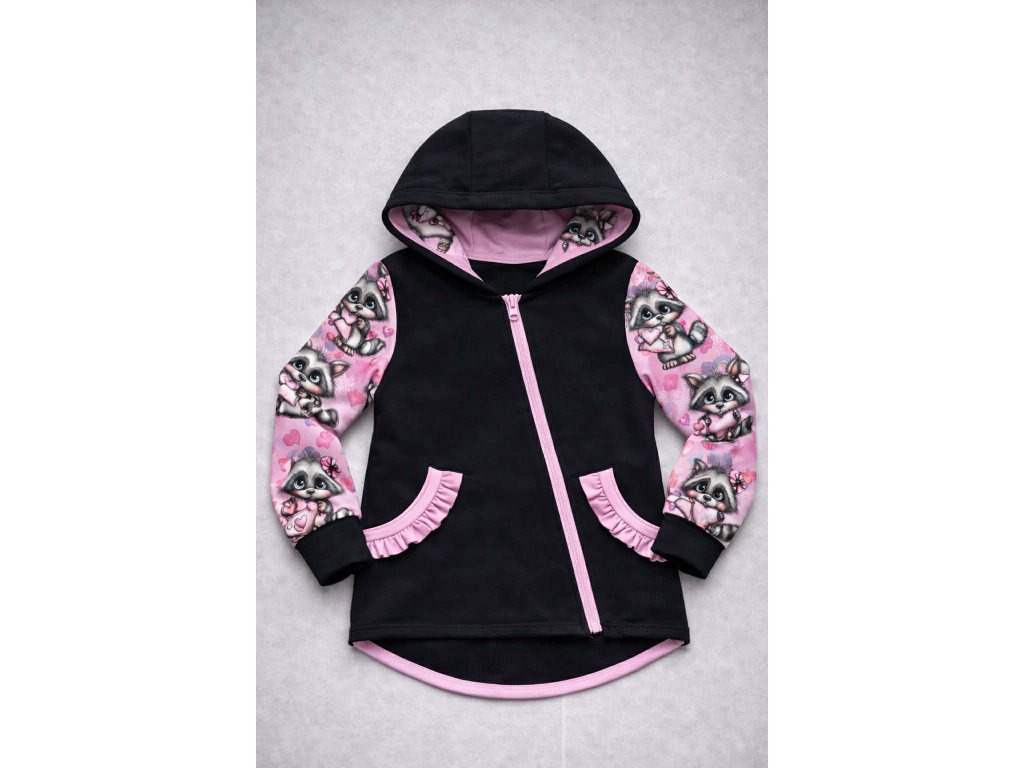Prodloužený zadní díl chrání záda před chladem a velká kapsa pojme všechny dětské poklady. Autorský vzor v kombinaci s jednobarevnými detaily dělá z mikiny nepřehlédnutelný kousek do školky, školy i na ven.