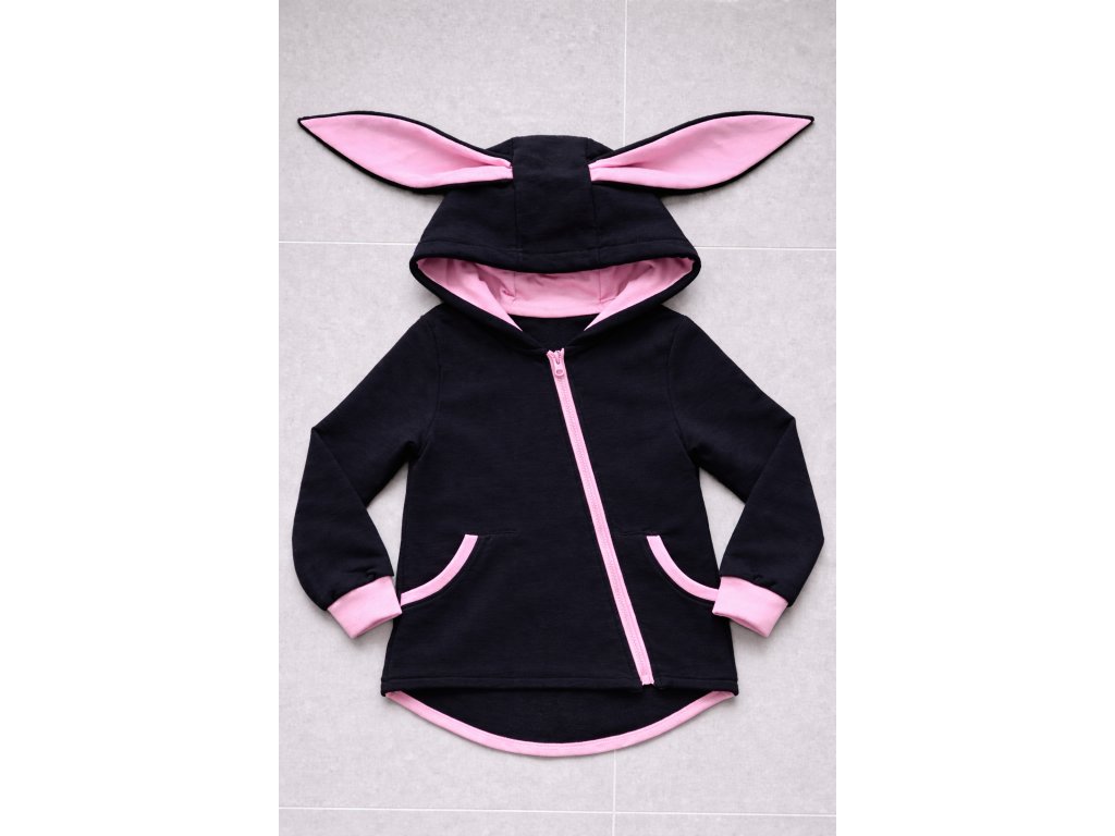 Mikinka s oušky křivák - zajíček černý s růžovou