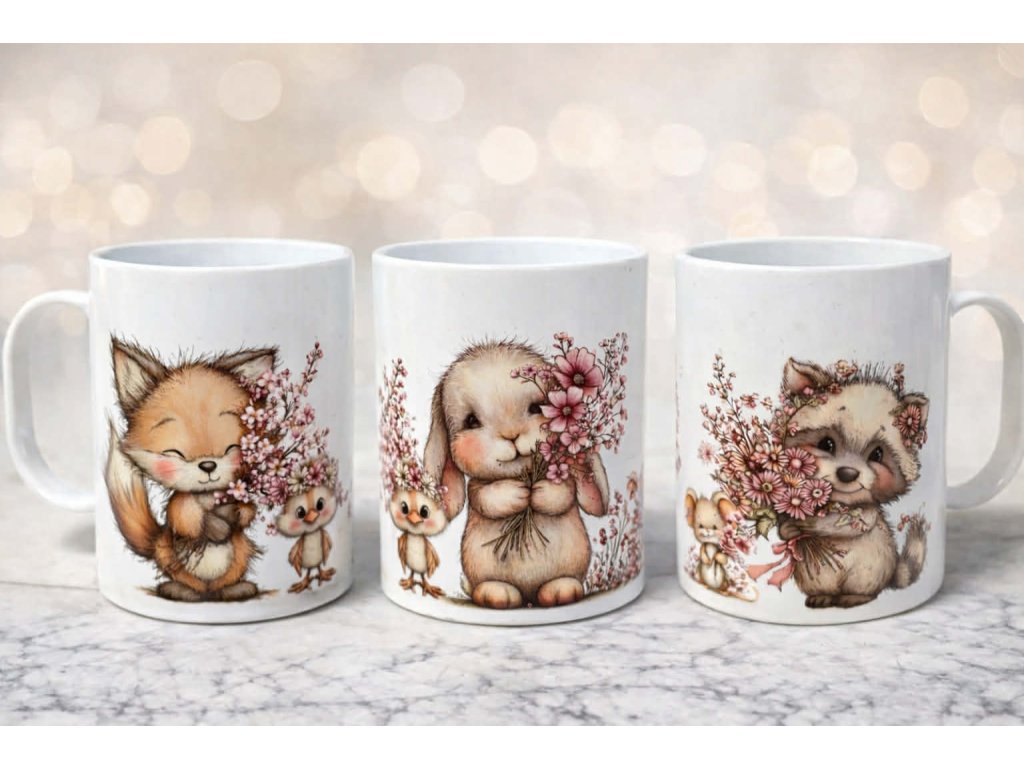 Nerozbitný hrneček - Zvířátka s růžovými květy