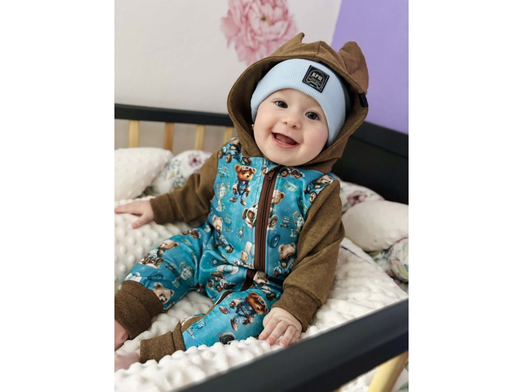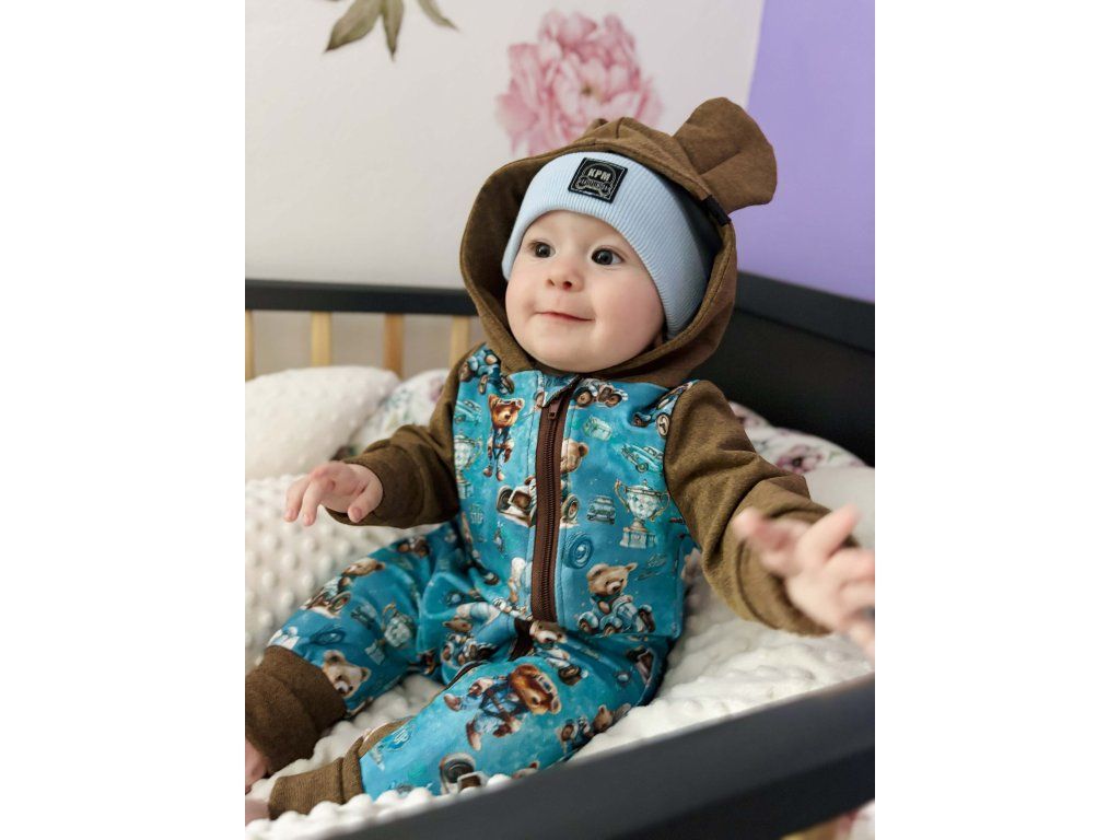 Overálek rostoucí teplákový s ušima - medvídek