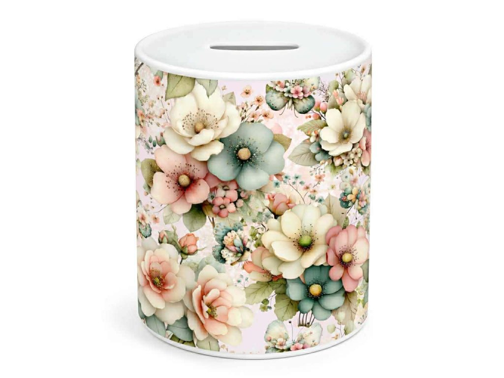Pokladnička keramická - bílá - Květinky