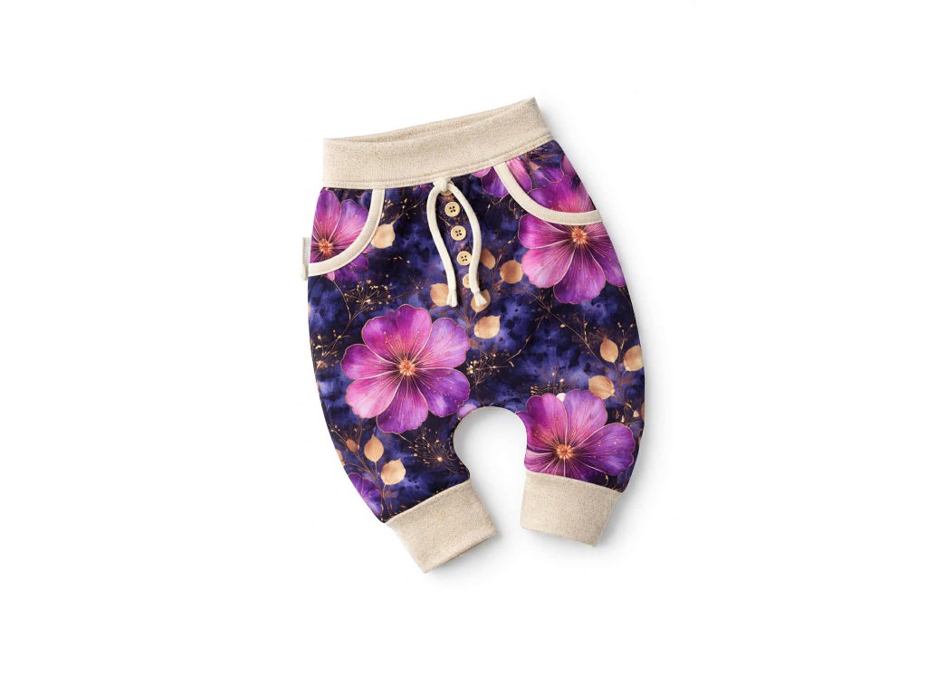 Bavlněné baggy tepláčky se  vzorem (vel. 56–98)