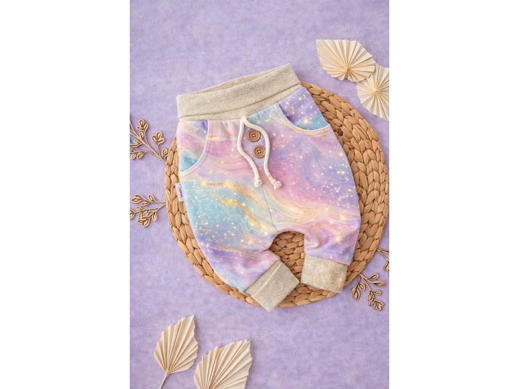 Bavlněné baggy tepláčky se vzorem (vel. 56–98)