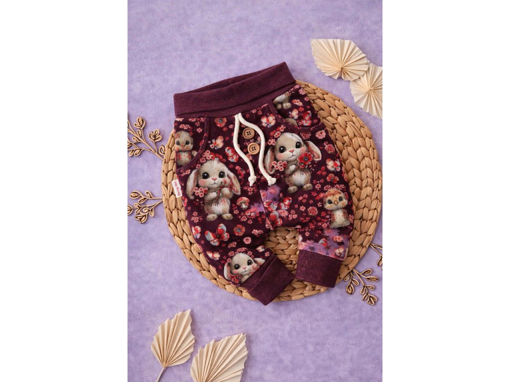 Bavlněné baggy tepláčky se vzorem (vel. 56–98)