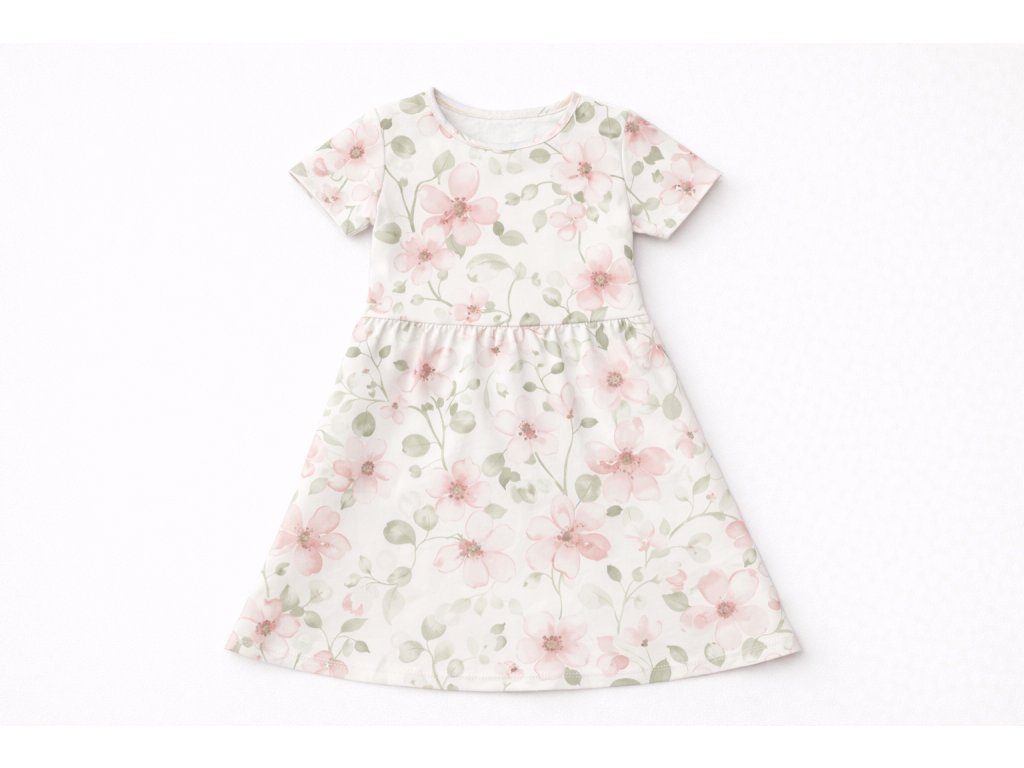 Něžné bavlněné šaty s romantickým květinovým vzorem a bohatými volánky na ramenou jsou ideální volbou pro malé princezny. Lehký, příjemný materiál je měkký na dotek a pohodlný na nošení po celý den. Střih s mírně nabíranou sukýnkou krásně splývá a neomezuje děti v pohybu.