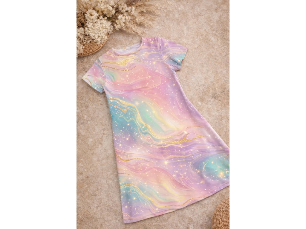 Lehké a pohodlné dětské šaty ušité z kvalitní bavlny, ideální pro každodenní nošení i slavnostnější příležitosti. Jednoduchý rovný střih poskytuje maximální volnost pohybu a pohodlí při hraní, běhání i tancování. Krátký rukáv a příjemná délka z nich dělají perfektní kousek na teplejší dny.