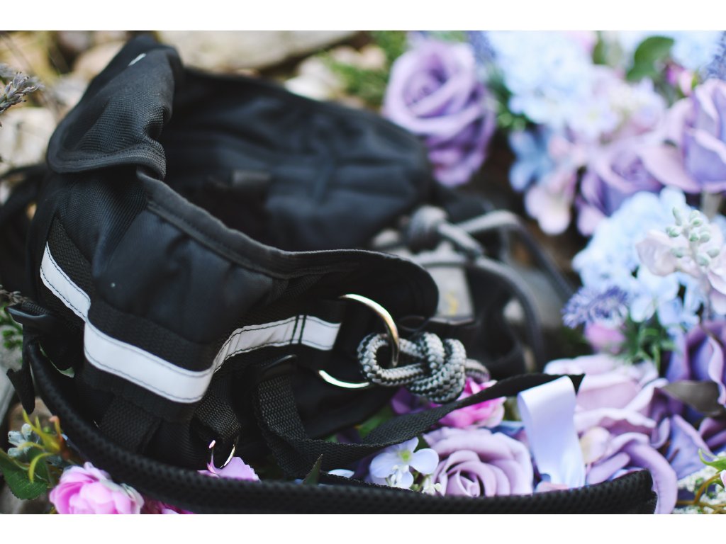 K uchycení vodítka slouží samostatná smyčka z pevného lana, po které se karabina volně pohybuje do stran, takže pohyb psa sedák nepřetáčí.