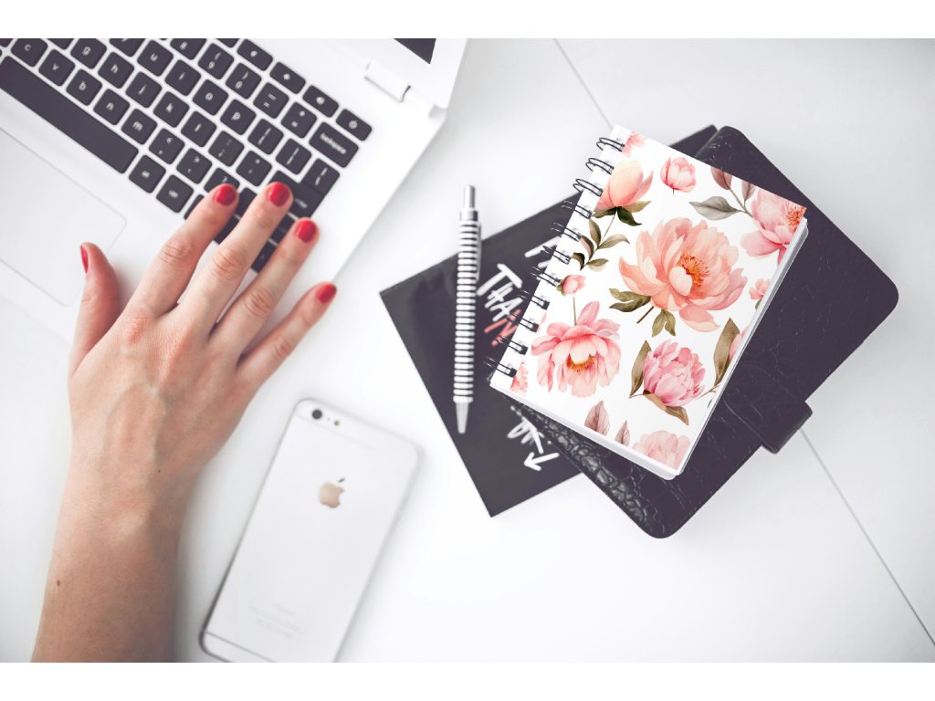 Sešit s potiskem - linkovaný - Pivoňky