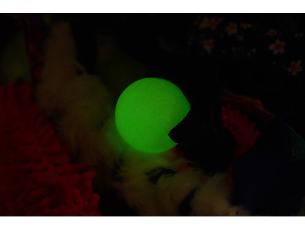 Aportovací míček, který ve tmě výrazně svítí. Míček perfektně padne do házečů Chuckit!