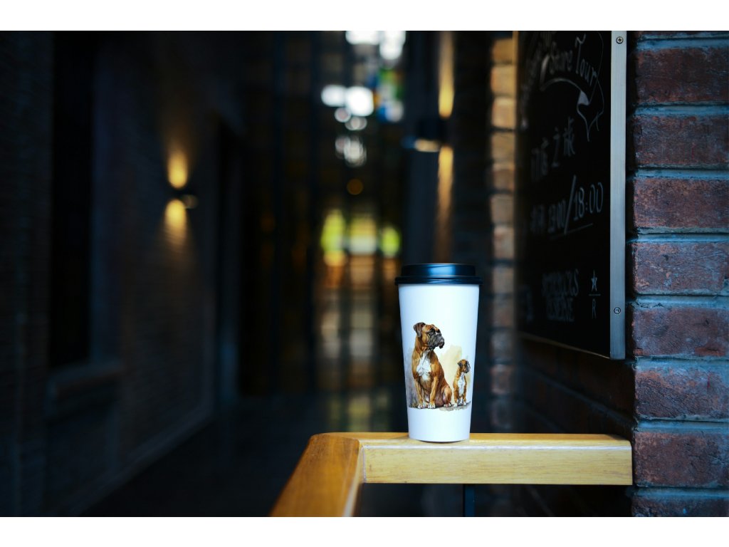 Dvoustěnný pohárek s barevným víčkem v elegantním matovém provedení.