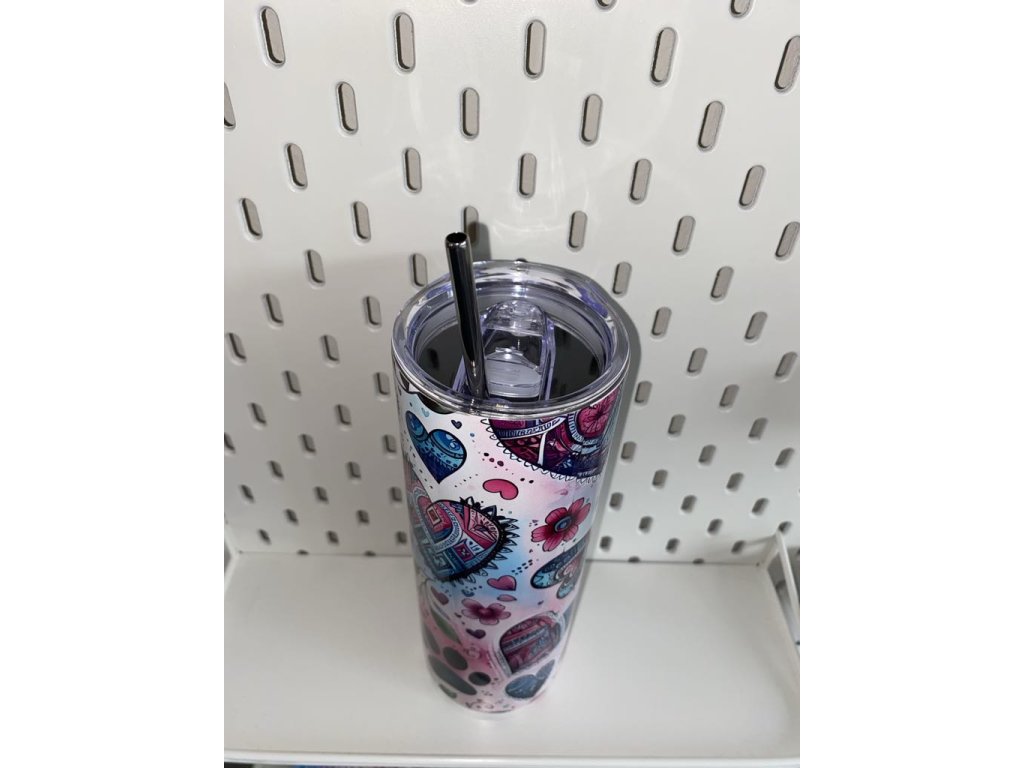Vysoký štíhlý termo pohárek z kvalitního nerezu s uzavíratelným plastovým víčkem. Ve víčku je výřez pro napití či prostrčení brčka, elegantní tenké plastové brčko je součástí dodávky pohárku.