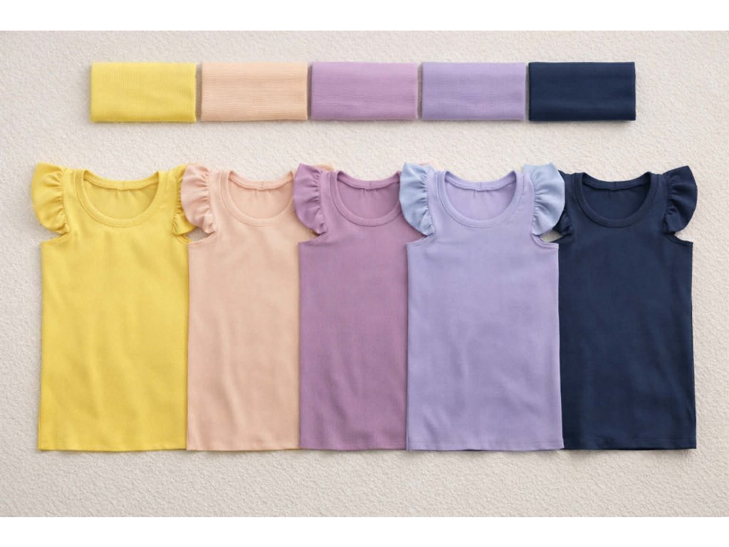 Dívčí tílko s volánkem ze žebrovaného úpletu