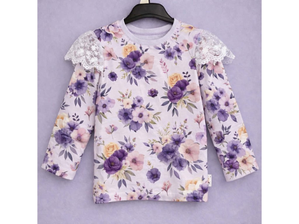 Něžné bavlněné tričko s romantickým květinovým potiskem a jemnou krajkou na ramenou je krásným kouskem do šatníku malé parádnice. Příjemný úplet je měkký, prodyšný a velmi pohodlný na nošení – ideální na běžné dny i slavnostnější chvíle.
