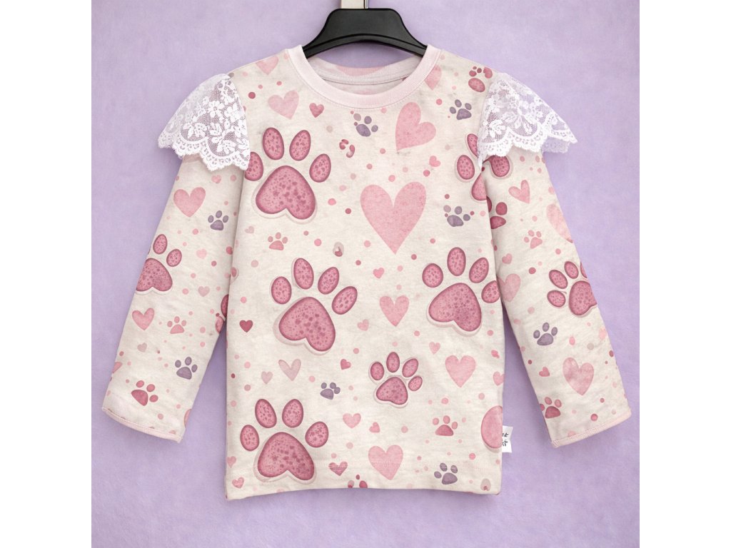 Něžné bavlněné tričko s romantickým květinovým potiskem a jemnou krajkou na ramenou je krásným kouskem do šatníku malé parádnice. Příjemný úplet je měkký, prodyšný a velmi pohodlný na nošení – ideální na běžné dny i slavnostnější chvíle.
