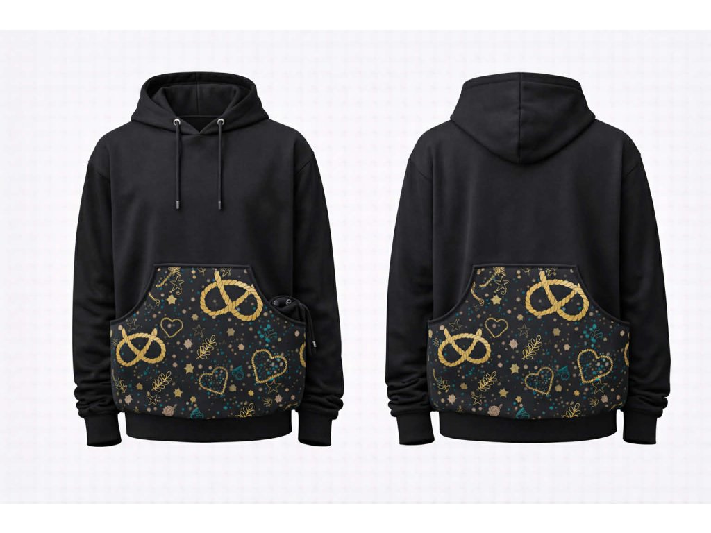 Tato výcviková mikina má extra velké kapsy vpředu i vzadu, do kterých se vejde vše potřebné při tréninku – pamlsky, hračky, vodítko i mobil.