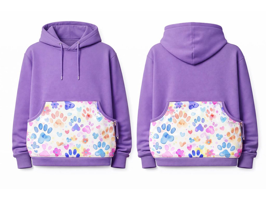 Tato výcviková mikina má extra velké kapsy vpředu i vzadu, do kterých se vejde vše potřebné při tréninku – pamlsky, hračky, vodítko i mobil.