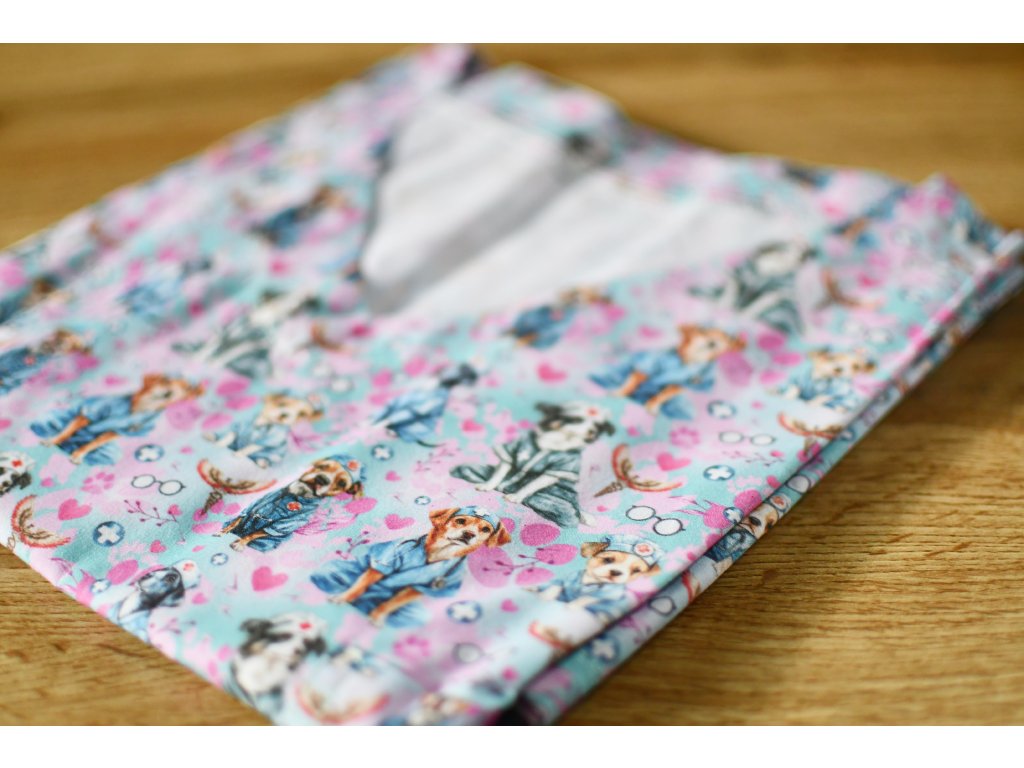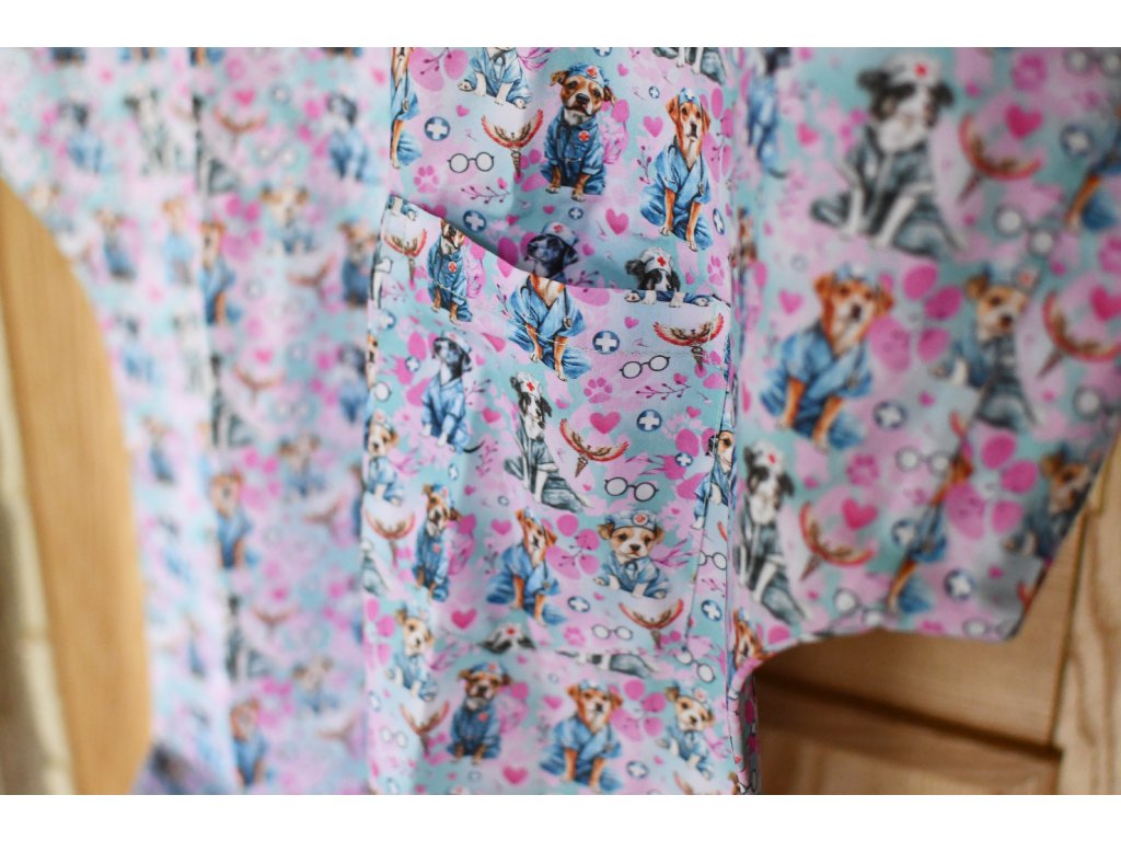Zdravotnická halena, vhodná na veterinární ordinace, také ale k dětem, seniorům a kamokoliv, kde se vám bude hodit a šířit dobrou náladu.